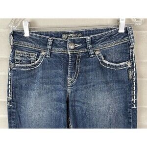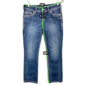 Silver Jeans Suki Capri Womens 28 Mid Rise Embroidered Stretch Bold Stitch Y2K