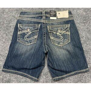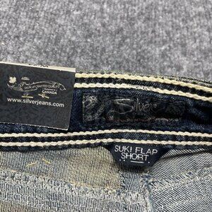 Silver Jeans Suki Flap Shorts Womens 24 Curvy Blue Denim Stretch Mid Rise New