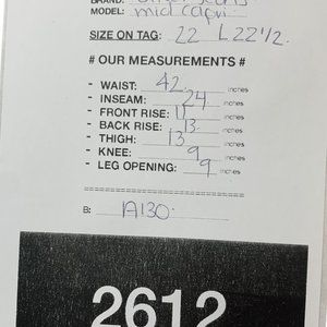 Size = tag size. The size on the tag is not always the dress size, so please see size charts for various brands to get a dress size conversion. Most importantly, take a look at our measurements as sizes can vary from pair to pair even within the same brand.