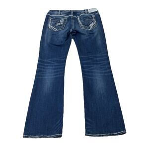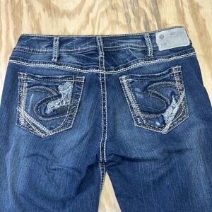 Silver Jeans Suki Mid Rise Distressed Slim Bootcut Blue Denim Jeans Women 31x31