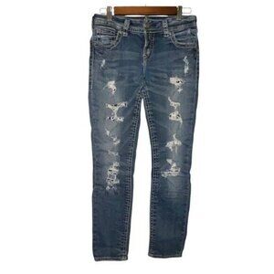 Silver Jeans Suki Mid Rise Works Distressed Denim Blue Jeans Women's Size 29
