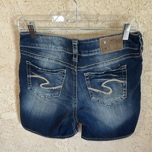 Experience the perfect blend of style and comfort with these high-rise blue denim jeans from Silver Jeans. Crafted with a classic dark blue wash, these jeans offer a timeless look with subtle fading and whiskering details. Ideal for any casual occasion, they provide a flattering fit and enduring quality.
