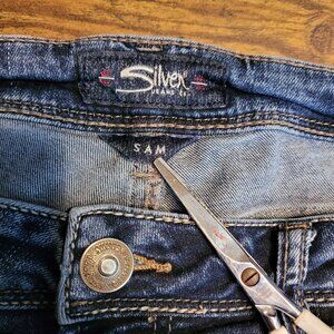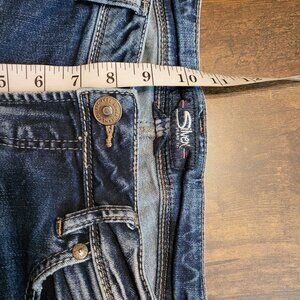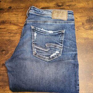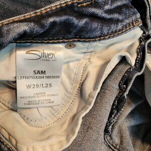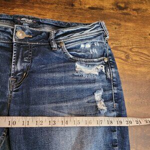 Silver Jeans Sz 29 Sam Boyfriend Low Rise Tummy Control Ripped Medium Dark Wash