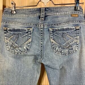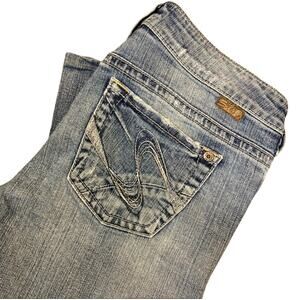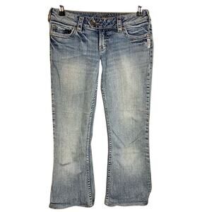 Silver Jeans TUESDAY Capris Womens Sz 28 Light Denim Cropped Embroidered Summer