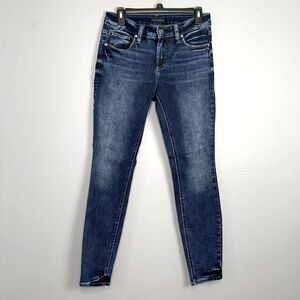 Silver Elyse Skinny Blue Jeans. Waist size 27. Inseam 29. Rise 9.5. In very good preowned condition. No stains. No distressing. Comes from a smoke free home.