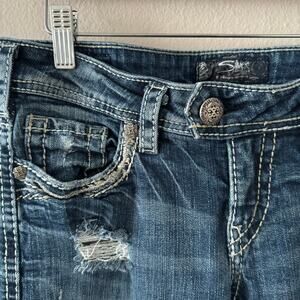 Silver Jeans Tuesday Low Baby Boot Distressed Lace Embroidered Pockets W29/L33