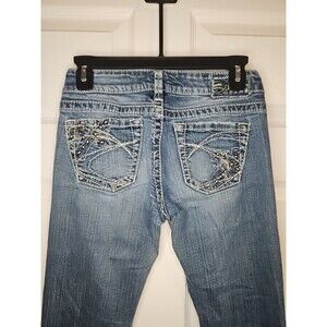 Silver Jeans Tuesday Low Rise Boot Cut 26x33 Medium Wash Embroidered Studded