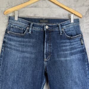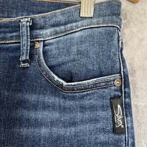 Silver Jeans Women 31/30 Calley Straight Blue Dark Wash Distressed Stretch Denim
