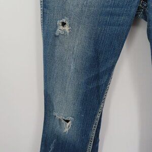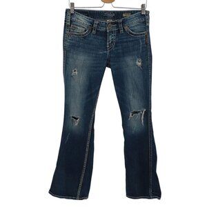 Silver Jeans Women 5 Twisted Bootcut Distressed Denim Solid Blue White Seams