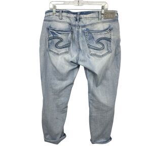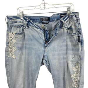 Silver Jeans Women BOYFRIEND Ankle size 33/25 Distressed Lace Light Wash Denim