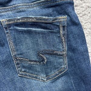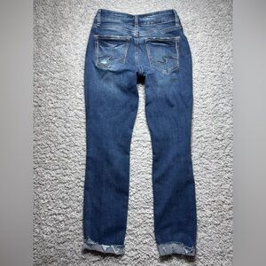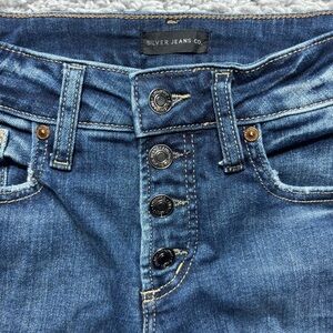 Silver Jeans - Boyfriend - Medium - Dark Wash - Exposed Button Fly - Stretch - Distressed - Holes - Cuffed Ankle - Streetwear - Party -