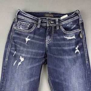 Silver Jeans Womens 26 Blue Dark Wash Suki Capri Straight Leg Distressed Denim. Condition is "Pre-owned"