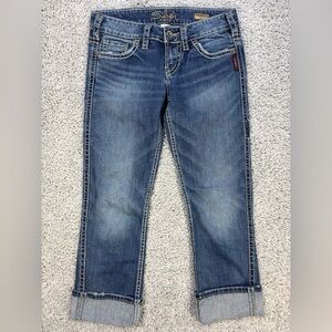 Silver Jeans Womens 26 Frances Capri Low Rise Denim Stretch Big Stitch Cuffed