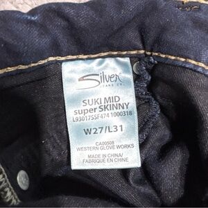 Silver Jeans - Suki - Mid Rise - Super Skinny - Dark Wash - Big Stitch - Stretch - Casual - Denim -