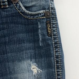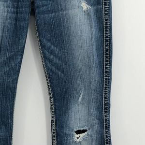 Silver Jeans Womens 27 Twisted Bootcut Distressed Denim Whiskered Blue