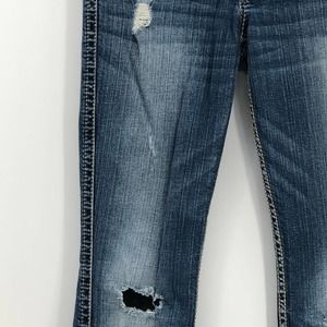 Silver Jeans Womens 27 Twisted Bootcut Distressed Denim Whiskered Blue