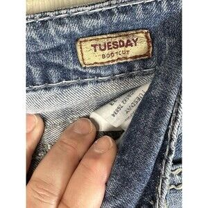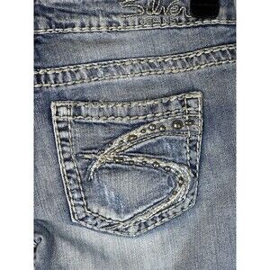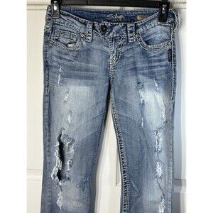 Silver Jeans Women’s 27/33 Tuesday Bootcut Flare Low-Rise Distressed Blue Denim