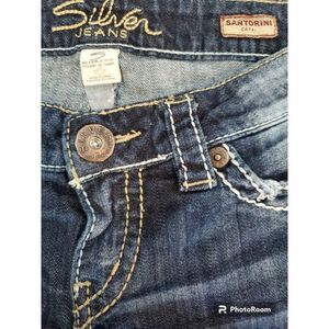 Silver Capri Jeans Womens 28 Santorini Thick Stitch Distressed Whiskered Blue