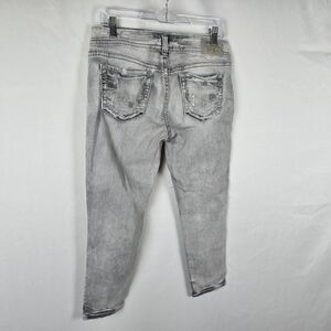 Silver Jeans Women's 28 Silver Gray Light Wash Elyse Skinny Crop Distressed