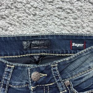 Silver Jeans - Suki - Super Stretch - Slim Boot Cut - Mid Rise - Dark Wash - Big Stitch - Embroidered - Rhinestones - Streetwear - Party - Night Out -