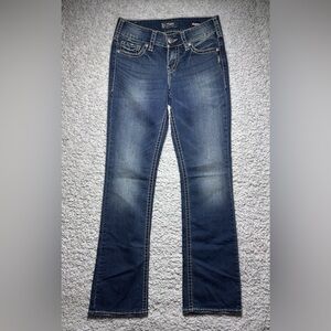 Silver Jeans Womens 28 Suki Super Stretch Slim Boot Cut Mid Rise Dark Big Stitch