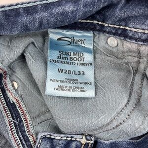 Silver Jeans Womens 28x33 Suki Mid Slim Boot Fluid Denim Blue