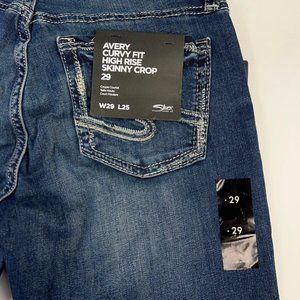 Silver Jeans Womens Avery Curvy Fit High Rise Skinny Crop Blue Jeans 29x35 New