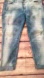 Trendy distressed boyfriend jeans. Light blue wash. Rolled cuffs for a casual look. Waist approximately 21” lying flat. Length 29”.