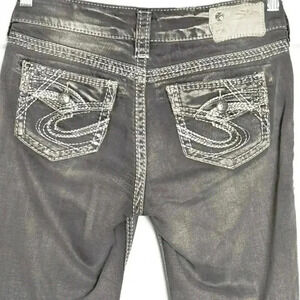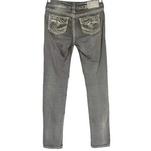 Silver Jeans Womens Grey Suki Flap Skinny Size 26x31 Distressed Soft Denim