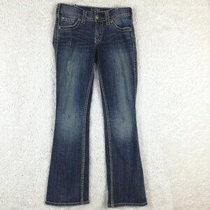 Silver Jeans Womens Suki Surplus Boot Cut Denim Blue Medium Wash Distressed 27