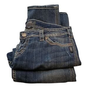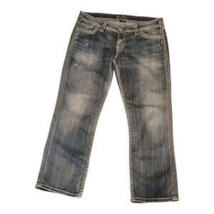 Silver Jeans Women's Twisted Capri Embroidery Distressed Jeans Low Rise Size 31