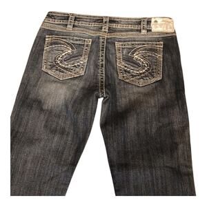 In good condition please review the photos measurements are in them. Silver Jeans Women's Twisted Capri Embroidery Distressed Jeans in size 31 are a stylish and trendy addition to any woman's wardrobe. These low-rise jeans feature embroidered accents, a twisted detail, and a distressed finish for a unique look. Made from a comfortable cotton blend fabric, these capris have a regular fit and a 26-inch inseam, making them perfect for all seasons. With a classic 5-pocket design and a zip closure, these designer jeans from Silver Jeans are a versatile and fashionable choice for any occasion.