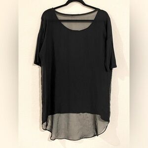 Silver Jeans Black Sheer Mesh Back Mix Media Longline High Low Hem Shirt