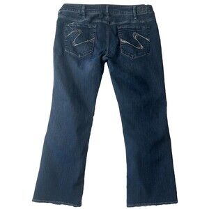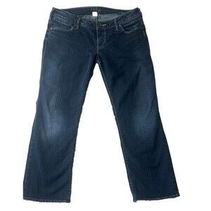 Looking for a stylish addition to your wardrobe? Check out these Silver Jeans women's 34 Santorini low rise ankle medium wash denim blue jeans. Perfect for any occasion, these jeans are sure to turn heads with their on-trend ankle length and classic denim fabric. Made from high-quality denim fabric, these jeans are durable and comfortable, ensuring they'll be a staple in your wardrobe for years to come.