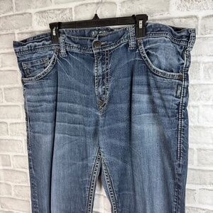 Silver Jeans ZAC Straight Leg Distressed Denim Jeans Mens 42 x 34 Stretch