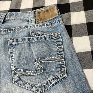 Silver Jeans Zac Straight Leg Distressed Holes Light Wash 32 x 34 Tall Cotton