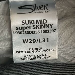 Silver Jeans Co. Suki Mid Super Skinny Jeans size 29x31 Fluid Denim
