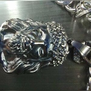 brand new large solid sterling silverJesus pendant with a 10mm Cuban chain solid sterling silver also and 22 in long