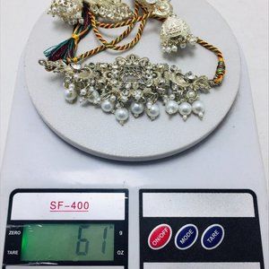 This elegant jewelry set is a beautifully crafted set with earrings and an elegant choker with white beads. This charming jewelry set is suitable to wear at weddings and different party occasions. This jewelry set is very comfortable to wear and flexible. It will make your everyday special.