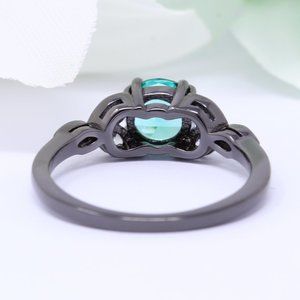 Marquise Round Art Deco Wedding Engagement Ring 1.00 Carat Paraiba Tourmaline Black Tone 925 Sterling Silver