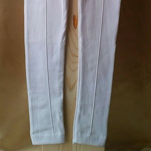 These leggings are very chic and rare. They have gold zippers for the pockets. Additionally, there is a stitch strip running vertical up both legs as more chic design.