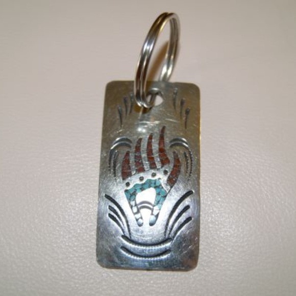 J Nezzie signed 2 inch length silver key ring.