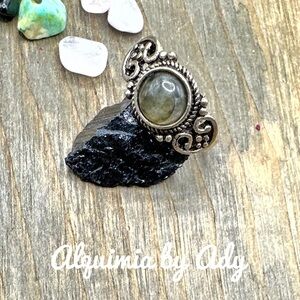 Silver Labradorite halo dainty ring