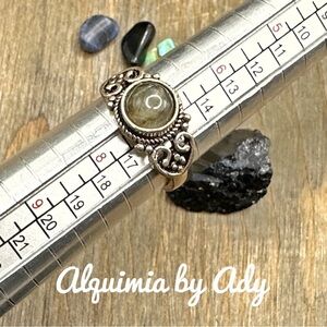 Silver Labradorite halo dainty ring