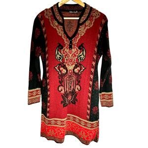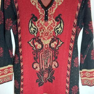 Silver Lane Red tapestry baroque sweater dress womans size Medium