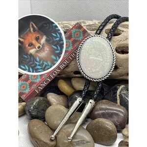Elevate your accessory game with this stunning oval-shaped bolo tie by FANCY FOX BOUTIQUE. The green faux opal set in brass metal and the Southwestern style of the leather bolo cord make it a perfect fit for any occasion - be it an engagement, wedding, graduation, birthday, or simply to add some flair to your outfit. The stainless steel base metal ensures durability, while the handmade process ensures the uniqueness of each piece.