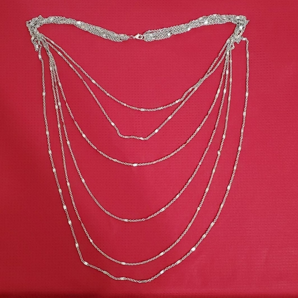 NWOT- 21" Silver-toned, 6 Layer Link Chain with Secured Lock. Each layer is a different length, shortest is 12" long & the longest is 21" long.
