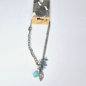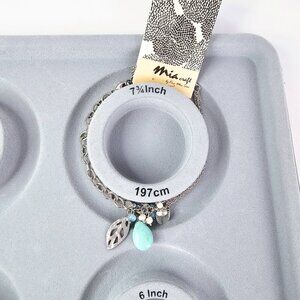 Silver Leaf Charm Bracelet With Turquoise Blue Stone And Beaded Accents NWT