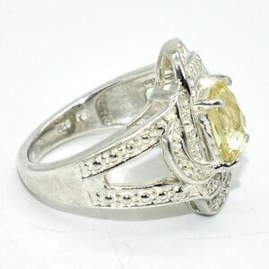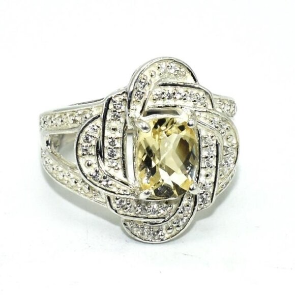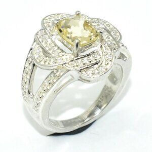 Silver Lemon Quartz & Cz (2.9ct) Rhodium Plated Ring (~Size 6) (~weight 6.25g)