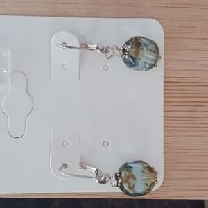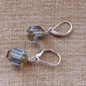 Silver Leverback Beveled Denim Brown Glass Beaded Dangle Earrings